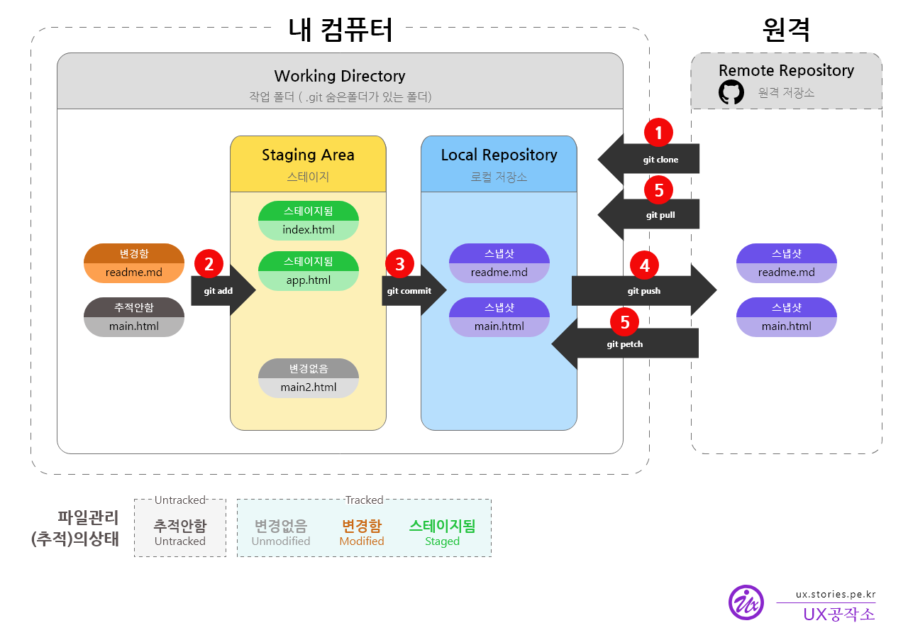 Working Directory에 있는 파일관리의 상태는 Untranked, Tracked으로,